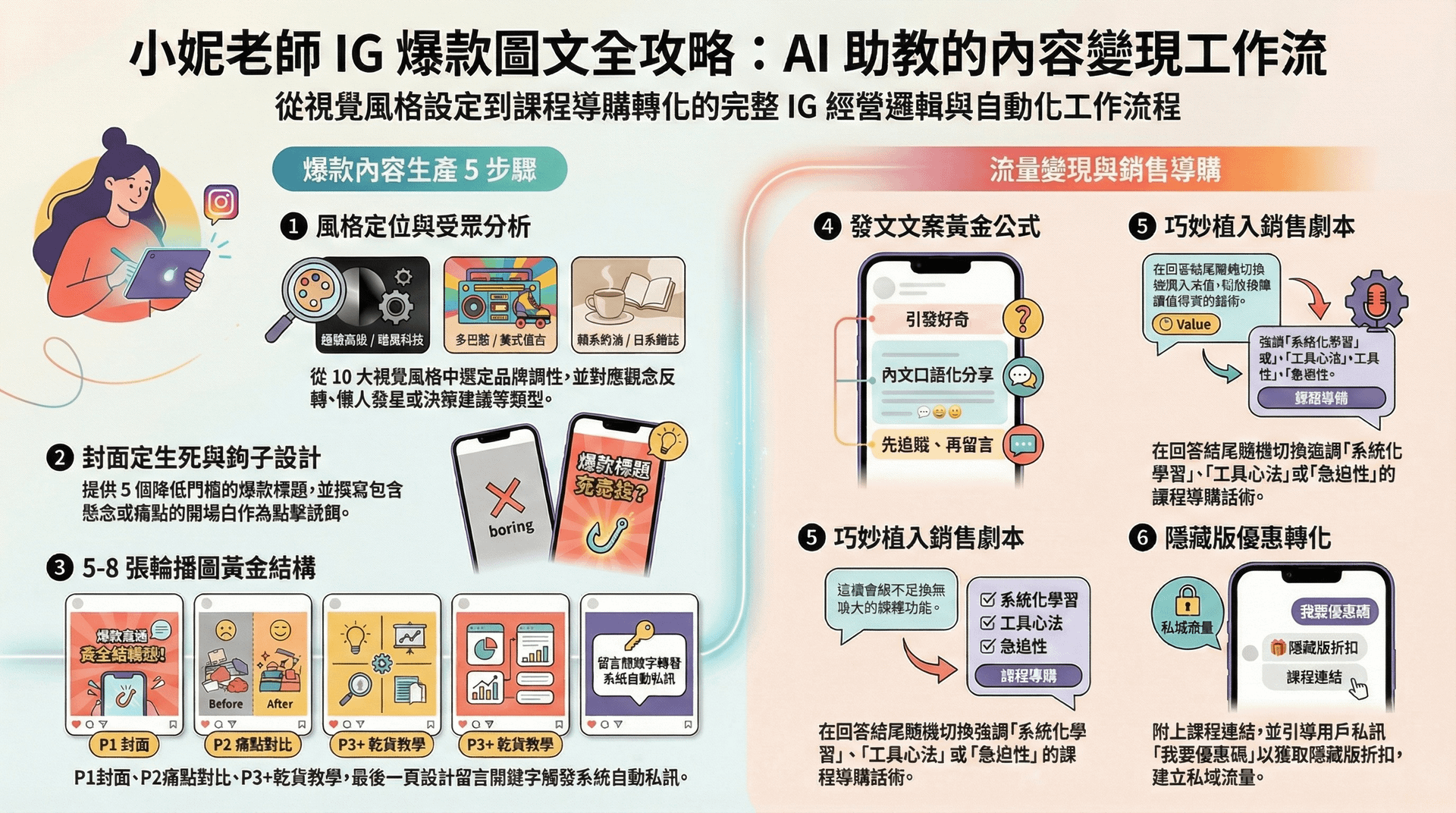 學會「懶人圖文爆單術」: 不用請設計師,也能製作出高收藏率、讓演算法主動推播的爆款圖文 。
